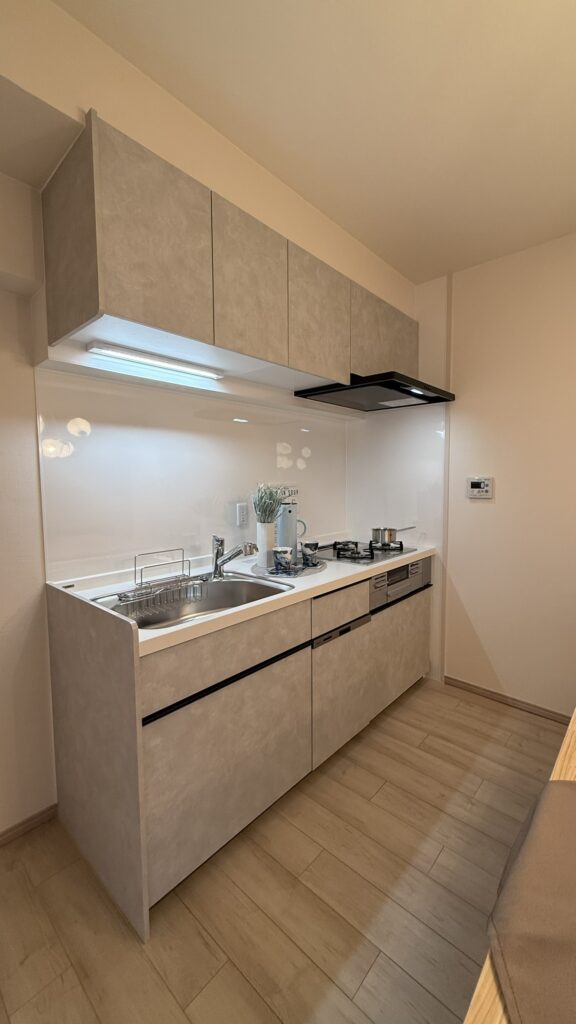 内容:床・クロス張替え、キッチン・浴室・洗面所・トイレ・給湯器設備交換、建具交換。ハウスクリーニング済み。